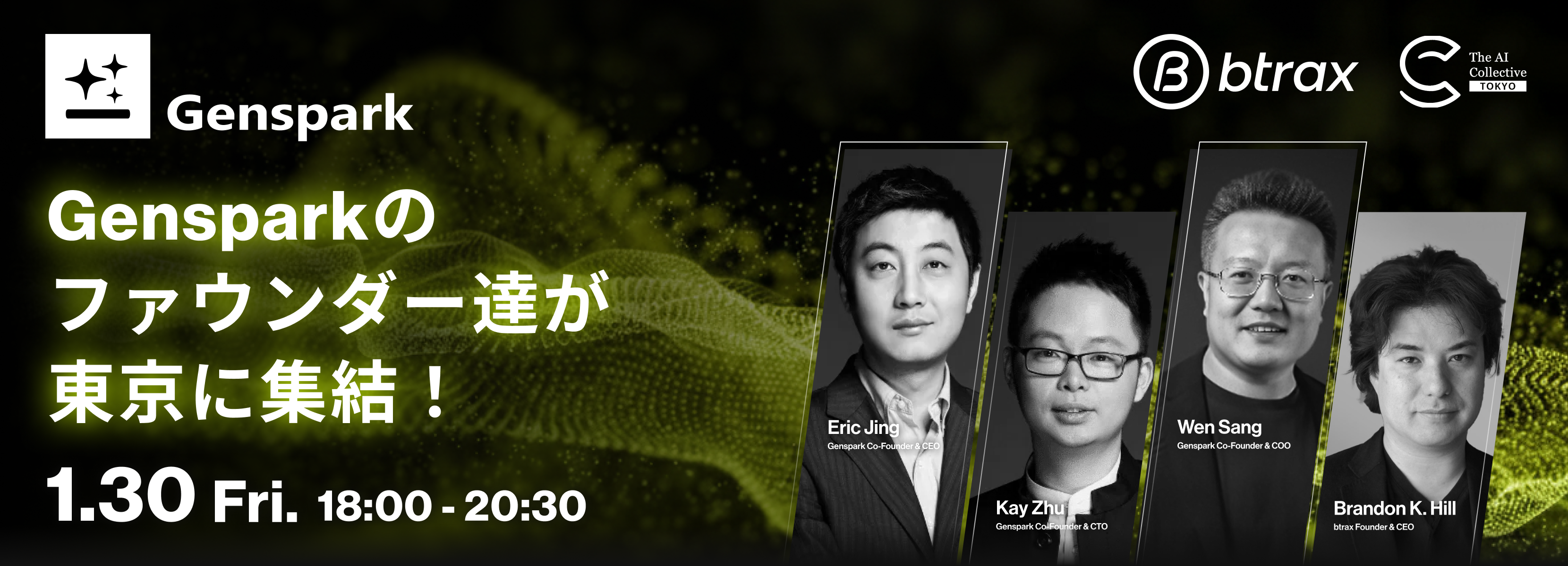 Genspark のファウンダー陣が来日し、プロダクト立ち上げの裏側、AIエージェント時代の設計思想、グローバルでの意思決定、そして日本市場の可能性まで!ここでしか聞けないリアルな視点で語ります。